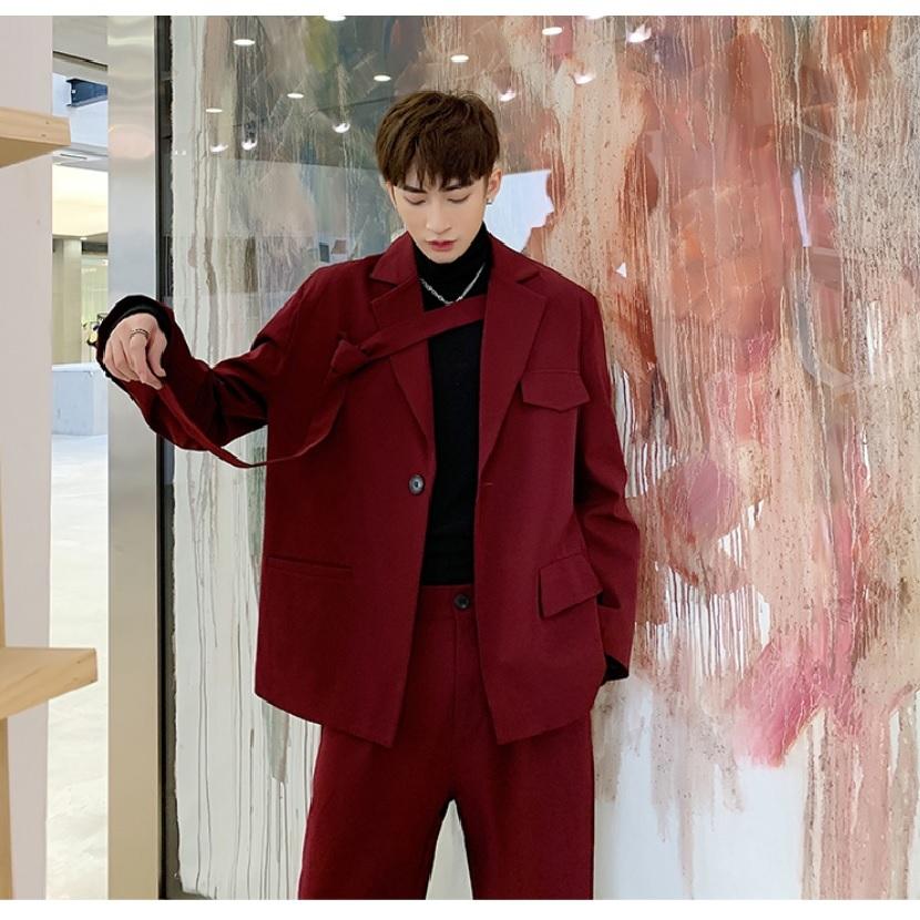 送料無料 メンズ スーツセット カラースーツ パンツ 長袖 ジャケット ビックサイズ オーバーサイズ 赤い セットアップ ルーズ 韓国 El Hkhshop 通販 Yahoo ショッピング